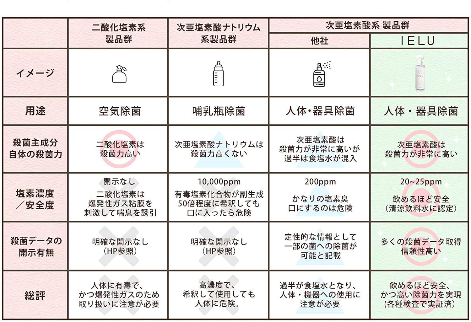 うがいなど出来ない赤ちゃんのか幼児にはIELU除菌スプレーをを口の中に6〜8プッシュするほかうがいとしても使えます。25年の年月をかけ、ついに除菌力と安全性を兼ね備えた除菌スプレーの開発に成功しましたIELUは2年間の長期保存が可能です。